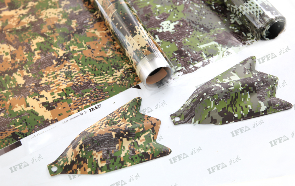 彩衣IFFA 近日開發了數款獨家設計的水轉印膜,以數位迷彩搭配樹身木紋,可以廣泛運用在各式產品中。有興趣的客戶,歡迎直接聯繫我們。